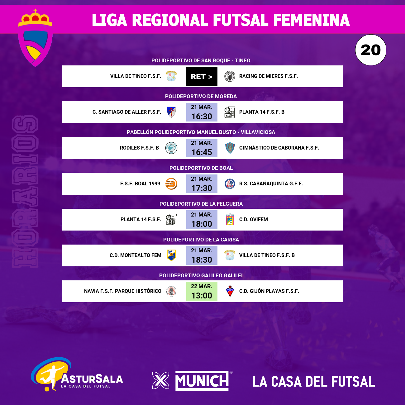 Entramos en la fase más bonita y decisiva de la Liga Regional Femenina de Asturias. Quedan solo siete jornadas, la cuenta atrás ya está en marcha para ver quién se mete en ese ansiado playoff de ascenso a Segunda División FutSal Femenina, y los nervios empiezan a notarse en las pistas. Si hay un equipo que parece no sentir esa presión es el Rodiles F.S.F. B. Las de Villaviciosa están, sencillamente, a otro nivel: líderes invictas con 52 puntos y unos números de auténtica locura (96 goles a favor y solo 9 en contra). Este sábado en el Manuel Busto quieren alargar esa racha perfecta, pero delante tendrán a un Gimnástico de Caborana (séptimas con 25 puntos) que viaja con toda la ilusión del mundo. Saben que puntuar en la pista del líder es casi una misión imposible, pero van dispuestas a ponerse el mono de trabajo, juntar líneas y buscar su oportunidad. En el fútbol sala, nadie te quita el derecho a soñar con dar el campanazo.