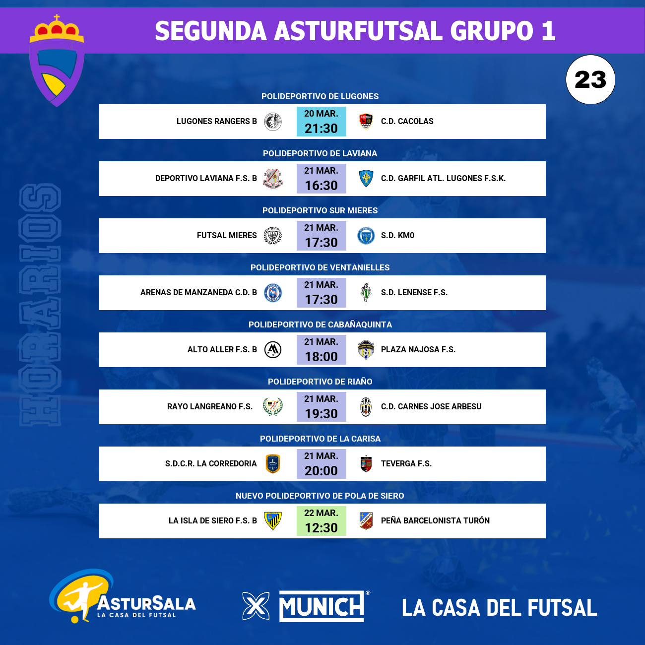 Especial atención merece también el Arenas de Manzaneda C.D. B (8º, 33 puntos), que saltará al Polideportivo de Ventanielles envuelto en un aura de euforia tras haber logrado la machada de vencer al líder a domicilio. Liderados por Nicolás Díaz, tercer máximo goleador de la liga con 20 tantos, el equipo local quiere demostrar que su triunfo no fue casualidad y afianzarse como uno de los jueces de la competición.